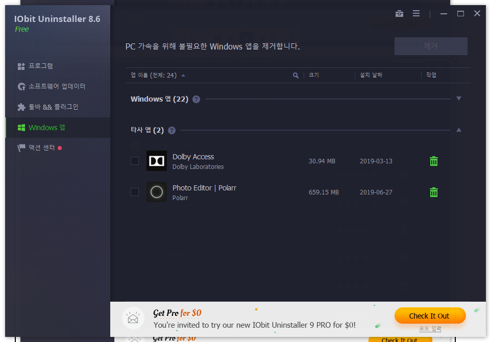 추가로 쉬운 제거, 강제 제거, 잔여 파일 청소, 파일 영구 삭제 등의 기능도 지원합니다.