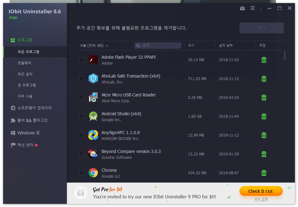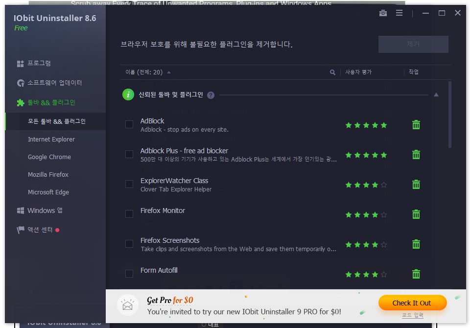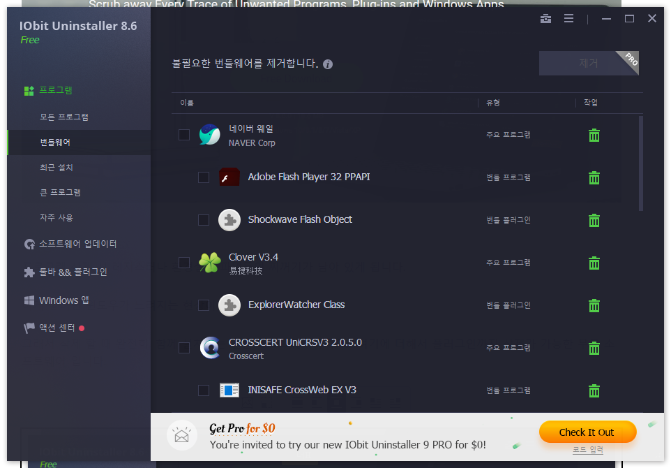 그래서 삭제 할 때 완전히, 함께 설치되는 번들 소프트웨어까지도... 여기에 더해서 플러그인까지 삭제가 가능한 무료 소프트웨어 입니다.